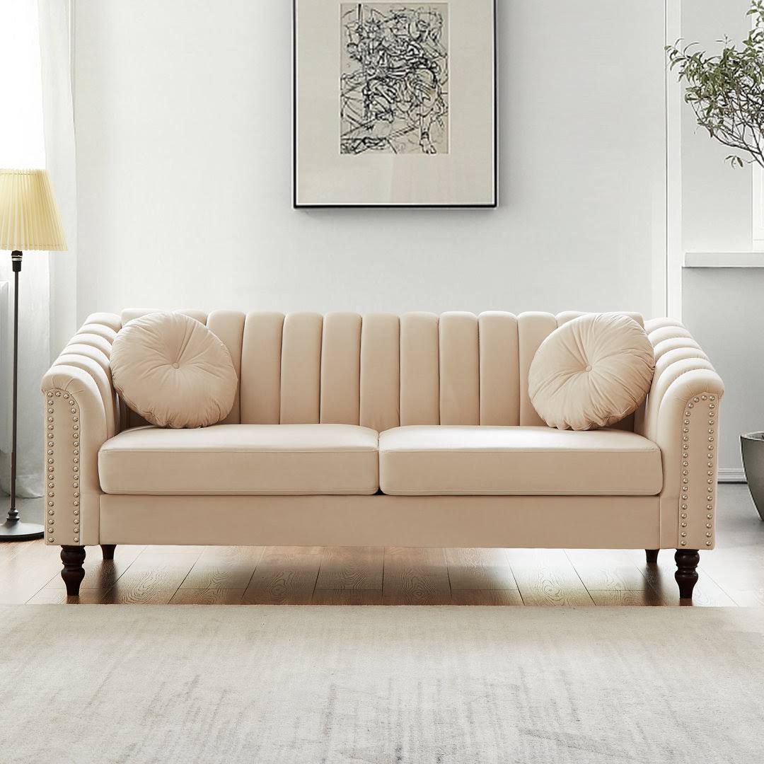 76.5" Velvet Channel-Tufted Chesterfield 3-Seater Rosdorf Park Upholstery RBJI9_TZTJ809