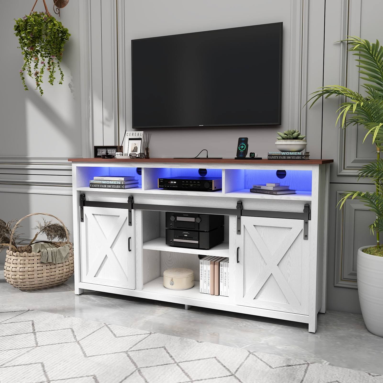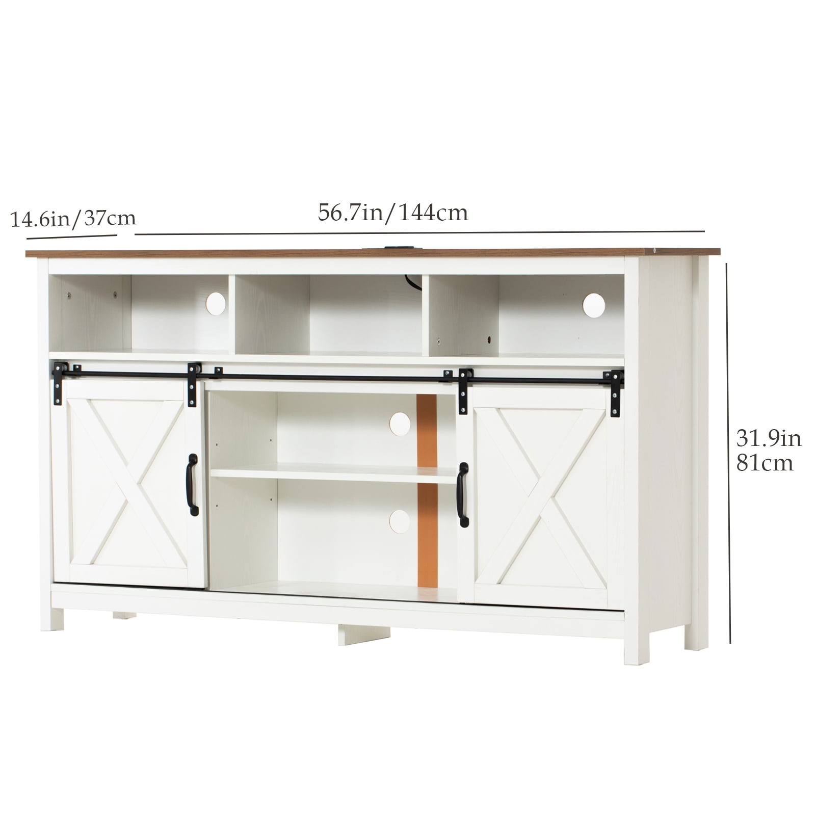 Features: 1. TV Stand for 65 inch TV: The farmhouse TV stand designed with two barnyard doors can be accommodated with most flat-screen TVs up to 65 inch. With adjustable shelves and storage design, the reclaimed wooden TV center will be suitable for your living room console TV cabinet/bedroom or even the entryway console. 2. Sturdy and Durable Frame: Made of high-graded-density certified engineered wood, this TV cabinet is a safety strong weight capacity. Furthermore, the slide and pulley TV hutch are made of premium metal made slide and the pulley ensures longer service life. The maximum weight capacity of the corner entertainment stand is 250lbs. 3. Vintage Wooden Farmhouse Style: Featuring barn door inspired cabinet fronts for a natural retro country feel. Various modern decor complements this Wooden Farmhouse TV stand. Not just a Entertainment Center with storage space, but also an attractive craft in your living room or bedroom. 4. Three Speed Adjustment: Are you still worried about because the partition of the TV Stand cannot be adjusted Compared with other TV cabinets, Our TV cabinet storage rack can be adjusted in three heights. The height of the adjustable shelves can be customized to whatever height you want to put it in. 5. All parts and accessories of the bed frame are numbered. Specification: