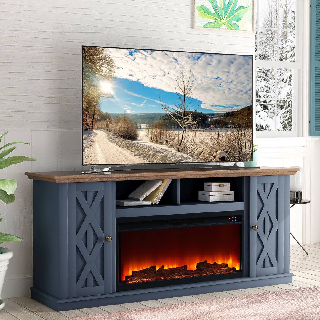 Knighten TV Stand For TVs Up To 78" With Fireplace Included Three Posts Color: Navy/Walnut