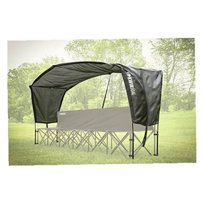 Kwik Goal Kwik Bench Shade (shade only)- Give your team shelter from the hot sun with the Kwik Bench Shade by Kwik Goal. The Kwik Bench is designed to fit over the 6-Seat Kwik Bench (sku A07-244 sold separately). This team bench shelter is constructed of durable steel, plastic and UV-resistant fabric materials. The Kwik Bench's easy to use tent pole assembly installs in minutes. Easily transport the Kwik Bench in the included carry bag.UV resistant fabric
