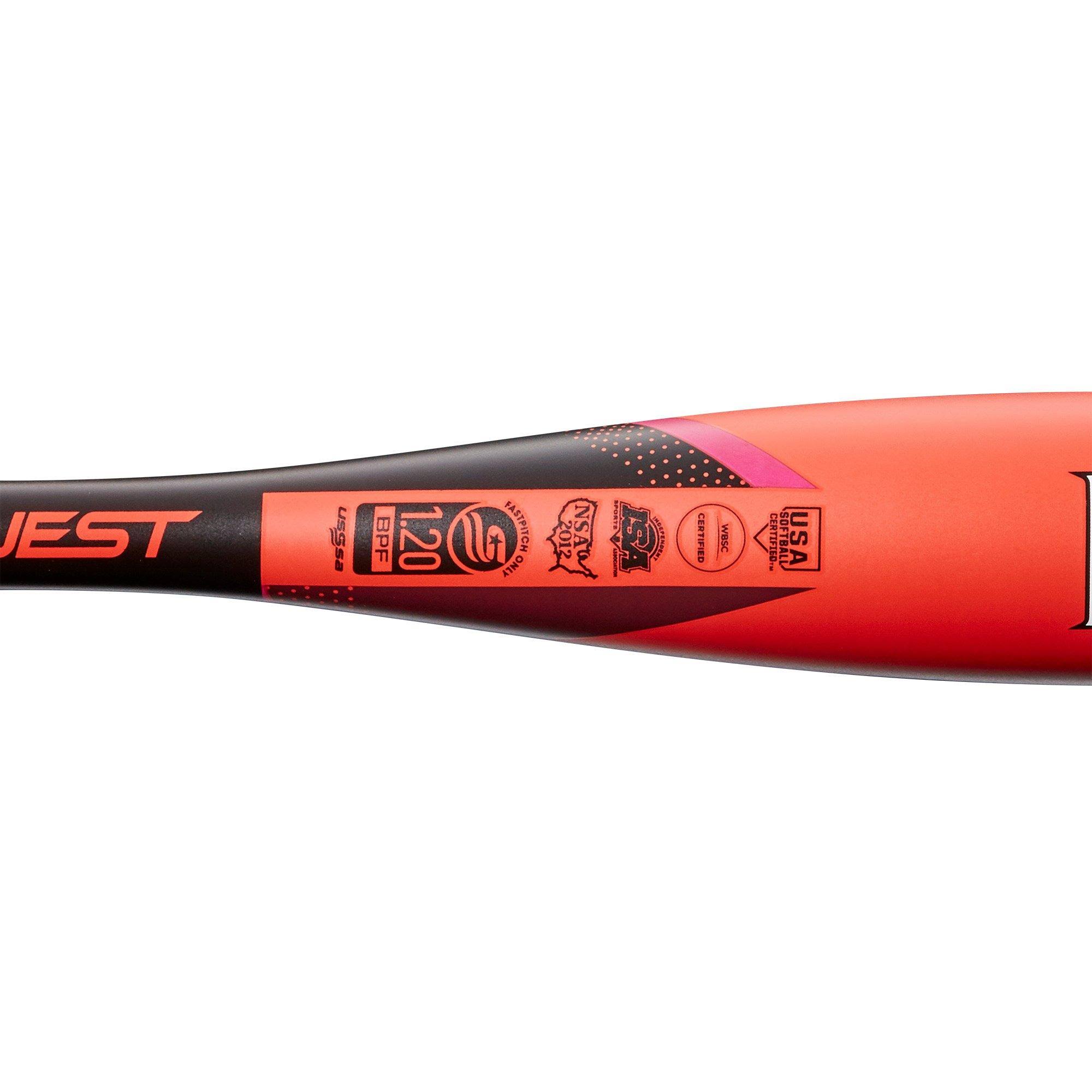 The Louisville Slugger Quest (-12) Fastpitch Bat is built for elite swing speed. It features a 100% performance alloy barrel for maximum control and plate coverage. The durable one-piece construction offers a stiff feel through the zone and better energy transfer. The ultra-balanced swing weight is perfect for players focused on making contact.BARREL: Full performance alloy for increased durability and swing speed.
